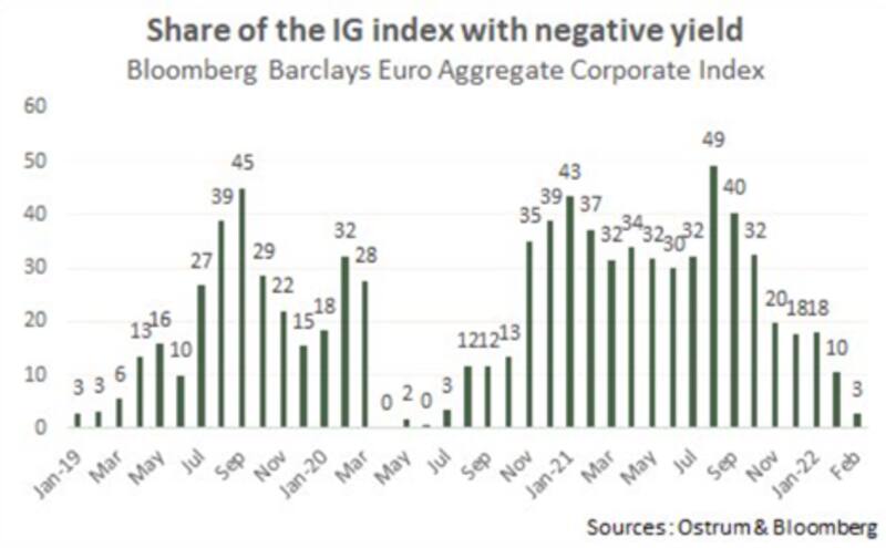 Incluso si se observa el porcentaje de bonos de grado de inversión europeo que rinde debajo de 0%, nos encontramos en el menor nivel desde julio de 2020.