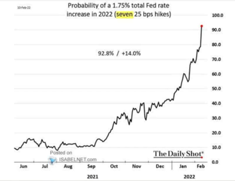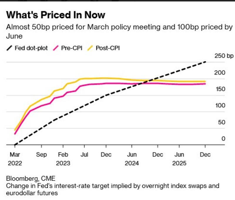 El mercado espera ahora 50 puntos básicos de suba en la tasa de referencia de la Reserva Federal para su reunión en marzo.