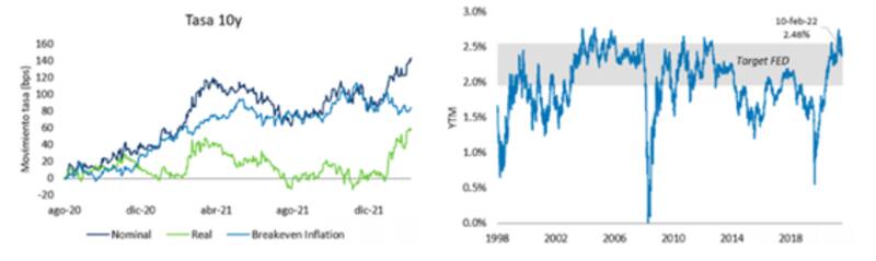 Respecto de la parte larga, desde Schroders consideran que, lo que se está observando en 2022 es que la suba de las tasas viene siendo impulsada por el componente real de la misma.