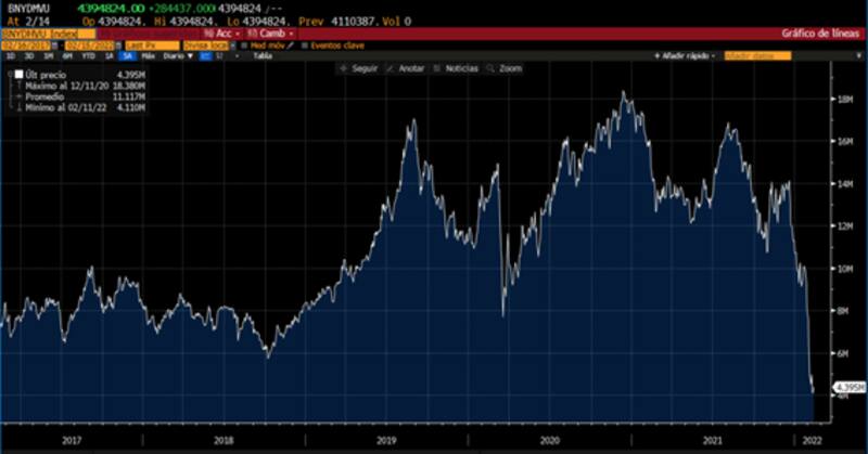 Es decir, debido al desplazamiento alcista en los rendimientos de la curva soberana americana, colapsó la cantidad de bonos con tasa debajo de 0%.