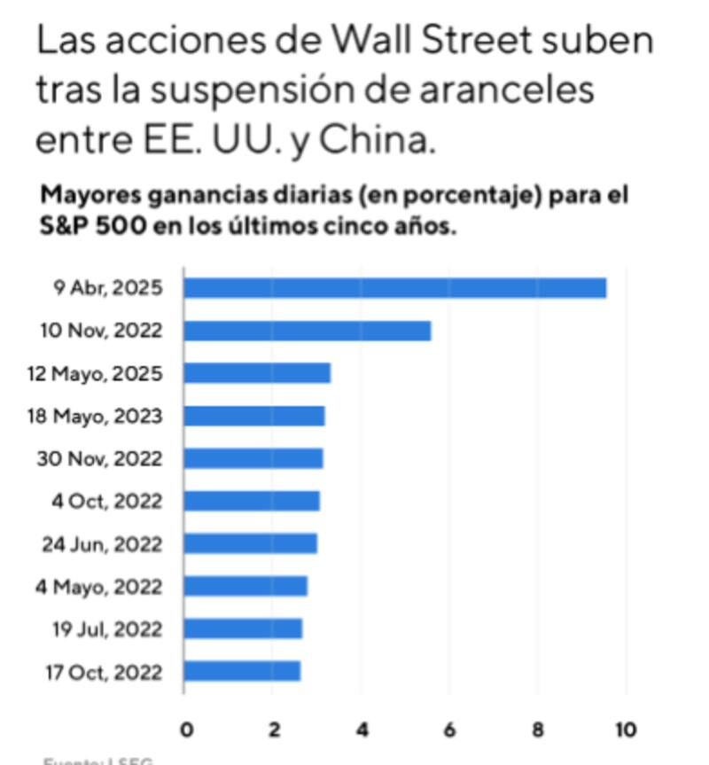 Flavio Castro, analista de Wealth Management de Criteria, coincide en que la decisión conjunta de Estados Unidos y China de reducir temporalmente los aranceles -del 145% al 30% en el caso estadounidense y del 125% al 10% en el caso chino- durante un período de 90 días brindó un alivio transitorio a los mercados.