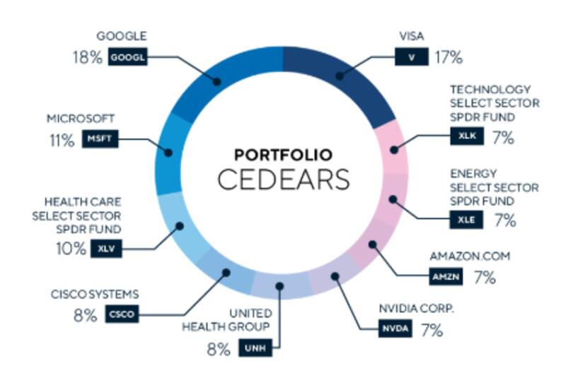 El portafolio de CEDEARs recomendado por Criteria se compone con un 18% en Google, 17% en Vista, un 7% en el ETF del sector tecnológico, un 7% en el ETF del sector energético, 7% en Amazon, 7% en Nvidia, 8% en United Health Group, 8% en Cisco, 10% en el ETF de salud y 11% en Microsoft.