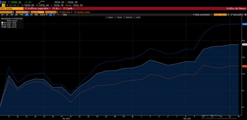 Desde el piso de abril, el Nasdaq se disparó 25%, mientras que el S&P500 gana 19%, en ambos casos ingresando en bull market nuevamente.