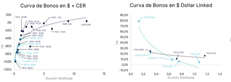 "No vemos tanto atractivo en Dólar Link para los que son netamente coberturistas e importadores (que es lo que apunta básicamente Bopreal). De cualquier manera, la curva dólar linked hoy luce más atractiva que el instrumento ser. Seguimos viendo interesante las paridades de los soberanos en dólares dada la poca alternativa que hay para los pesos. Si la curva se tiende a normalizar, vemos bastante atractivo valor en GD30 y GD41", afirmó Bagilet.