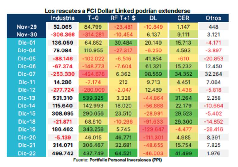 Este es el ritmo de salidas más importantes dentro de los FCI dólar linked más importante en más de dos años.