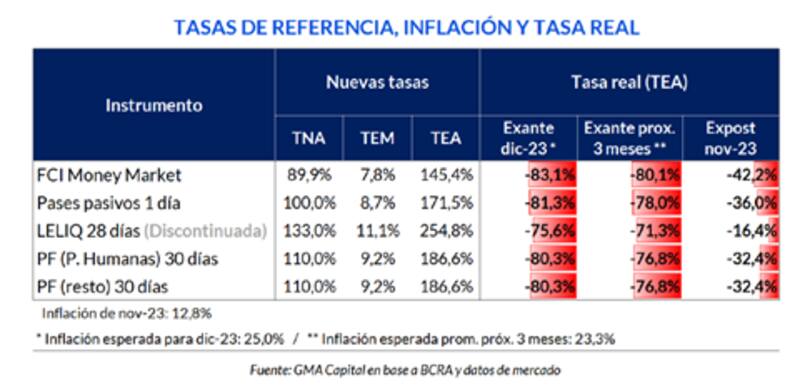 Ninguna de las tasas de interés de los instrumentos financieros y alternativas de inversión locales le puede ganar (ni igualar) al 25% o 30% de inflación para lo que se espera para los meses de diciembre y enero.