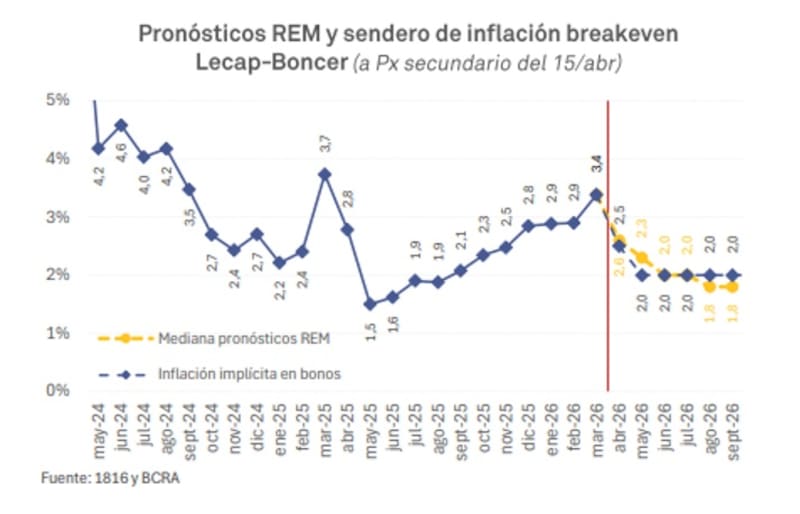 Para septiembre, los precios de los bonos en pesos tienen incorporado una dinámica bajista mayor, cayendo a niveles de 1,9% a 1,8%.