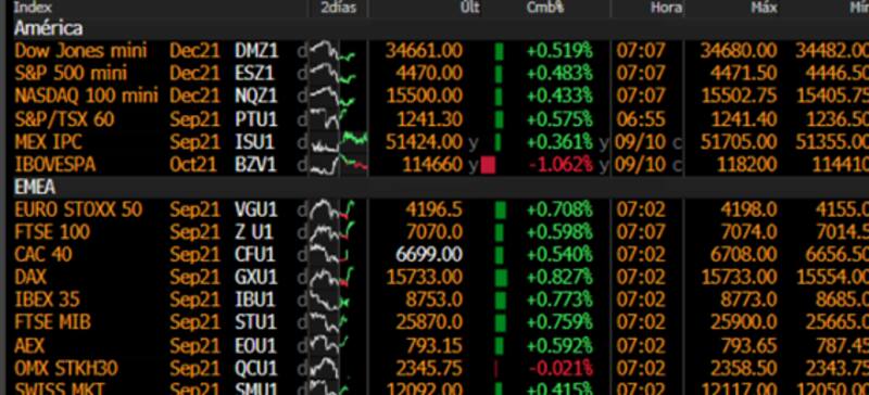 Los tres principales índices norteamericanos operan con ganancias. El Dow Jones sube 0,51%, el S&P500 avanza 0,48% y el Nasdaq gana 0,43%.