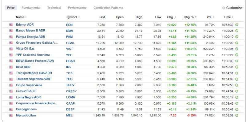 Las acciones argentinas en Wall Street abren con fuertes subas, lideradas por Edenor que gana 12,75%. Le siguen el Banco Macro, que sube 11,75%, Pampa Energía, con un alza de 11,3%, y el Grupo Financiero Galicia y Vista Oil, que operan con avances respectivos de 11% y 10%.