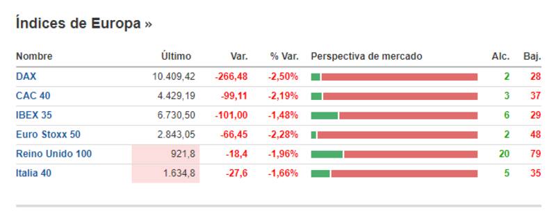 Los mercados europeos se hicieron eco de las pérdidas que registraron ayer en los mercados americanos y hoy los asiáticos cerraron en baja, después de que los futuros de crudo de Estados Unidos cotizasen por primera vez en la historia en negativo. Debido a que millones de personas están confinadas en sus casas en todo el mundo debido a la pandemia del coronavirus, la demanda física de crudo se ha desplomado.
