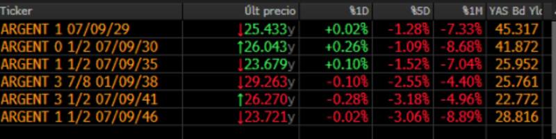 Los bonos de deuda, sometidos a la presión de la intervención oficial para mantener a raya los dólares financieros, casi no se movieron.