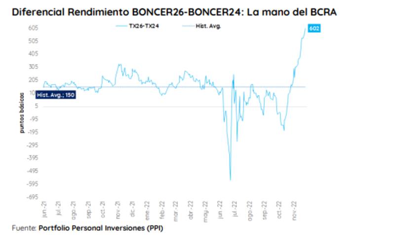 En este sentido, PPI vuelve a sugerir su estrategia Barbell: utilizar letras CER de muy corto plazo (hasta marzo/abril) y títulos largos TX26/DICP. "Si la curva CER se normaliza los ganadores con relación a la situación actual serán los bonos más largos", cerraron.