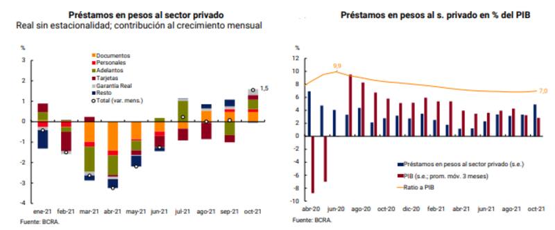 En tanto, el documento del BCRA señala que los préstamos en pesos al sector privado se habrían expandido a una tasa mensual de 1,5% en términos reales y sin estacionalidad.