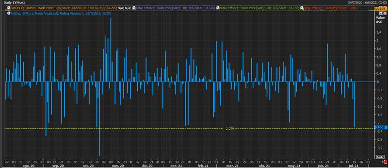 Por otro lado, los temores de la variante Delta de coronavirus también generan un contexto de mayor volatilidad global. Los crecientes casos detectados en muchas partes del mundo, incluidos países altamente vacunados como el Reino Unido, han llevado a los inversores a reducir sus expectativas de crecimiento económico en los próximos meses.