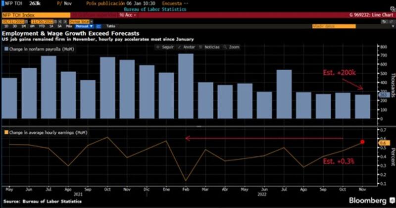 Por lo tanto, la tensión inflacionaria proveniente del mercado laboral hace pensar que obligará a la Fed a seguir aplicando política monetaria contractiva para enfriar a la economía y reducir las presiones inflacionarias.