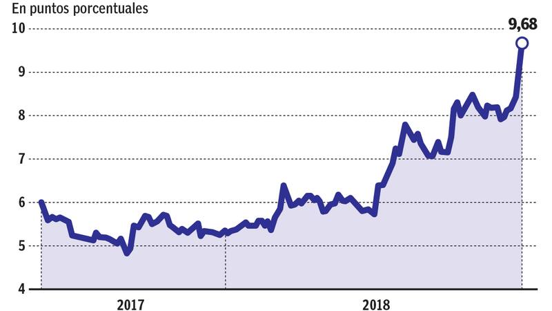 En una rueda no apta para cardíacos, el riesgo país voló: saltó casi 70 puntos en un sólo día para cerrar en las 703 unidades, su peor marca en los últimos tres años y medio.