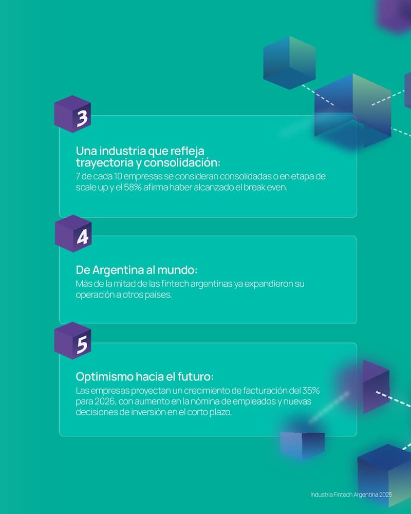 La internacionalización también sobresalió como una tendencia estructural. Más de la mitad de las fintech locales (54%) expandieron sus operaciones fuera del país, un dato que posiciona a la Argentina entre las economías con mayor proporción de firmas fintech internacionalizadas.