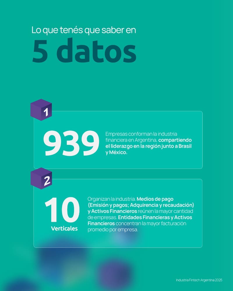 Según el documento, el país alcanzó las 939 compañías fintech activas, un número que consolida a la Argentina como uno de los tres polos principales del sector en América Latina, junto con Brasil y México. El mapa identificó diez verticales de negocio, entre las cuales Medios de pago y Activos financieros se posicionaron como las más relevantes, seguidas por las de Crédito, Infraestructura, y Cripto y Blockchain.
