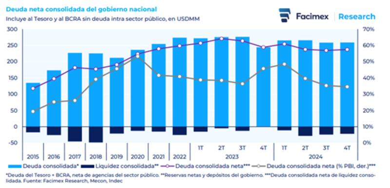 "El nuevo acuerdo con el FMI y la cancelación de LLII eleva la deuda bruta consolidada, pero también incrementa la posición de liquidez con el aumento de las reservas netas, por lo que la deuda neta consolidada no se modifica. Por eso, lo importante será ver qué se hace con la liquidez obtenida", explicó.