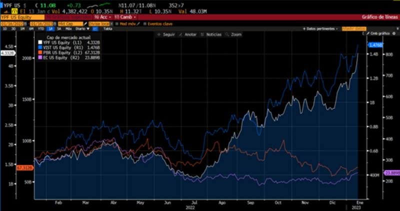 "Todavía las empresas argentinas operan con un descuento significativo respecto a la región. Por ejemplo, petroleras tales como YPF o Vista Energy operan con ratios muy inferiores a los de la región", dijo.