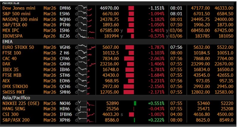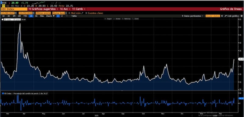 La volatilidad también se disparó, con el VIX operando en 29 puntos, su mayor valor desde abril de 2025.