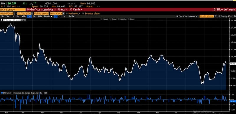 El dólar index subió a su mayor valor desde enero, lo cual implicó que el mercado demanda este activo como vehículo para la seguridad en las crateras.