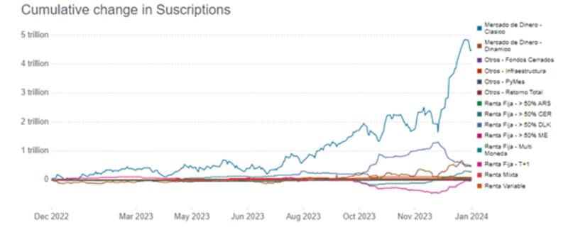 Según sus registros, esos fondos nuevos se canalizaron hacia instrumentos de Cash Management (Money Market y Fondos T+1).