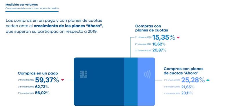 En cambio, “al analizar la cantidad de cuotas elegidas al pagar, se destaca que en el 3° trimestre continúan creciendo los planes “Ahora , superando su participación también respecto de 2019 , dijo Ballarino.