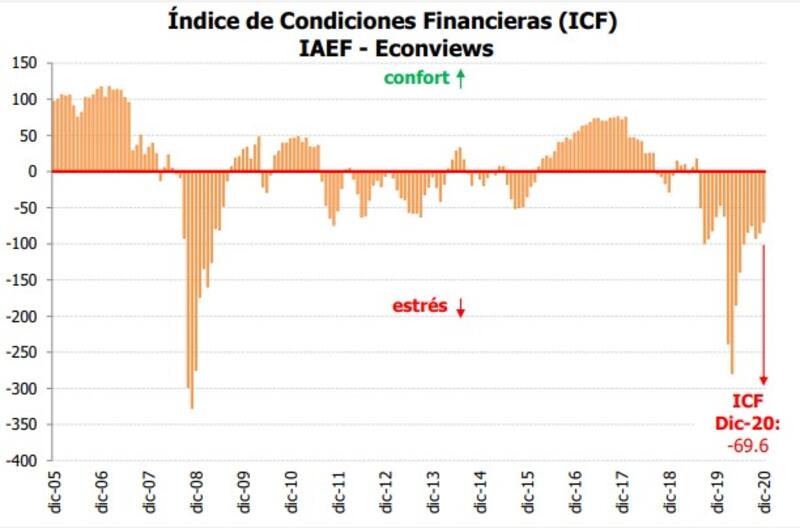 El mercado internacional impulsó en diciembre la mejora en las condiciones financieras locales. Así lo revela el Índice de Condiciones Financieras (ICF) que elabora el Instituto Argentino de Ejecutivos de Finanzas (IAEF), junto con Econviews, que mejoró 15.3 puntos para ubicarse en -69.6 puntos.