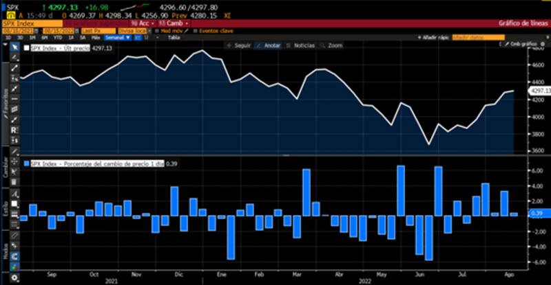 Los analistas de Balanz sostuvieron que la reciente sorpresa positiva en la inflación de julio en Estados Unidos generó un repunte en el apetito por riesgo en contrapartida de un aumento en la expectativa de una Reserva Federal menos estricta.