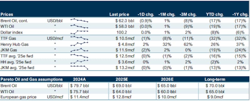El mercado energético global entró nuevamente en zona de turbulencia. El Brent, contrato de referencia para la Argentina, opera en torno a los u$s 62 por barril, y por momentos amenaza con perforar los u$s 60, en un contexto dominado por negociaciones de Estados Unidos para terminar con la guerra en Ucrania, una presión bajista creciente sobre los commodities y señales mixtas de oferta global.