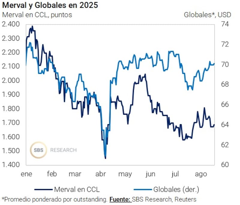"Desde esta perspectiva, los inversores parecen haber incorporado un 'premio de riesgo' adicional a los activos locales, lo que explica, en gran medida, el rezago en el desempeño de las acciones argentinas", señaló.