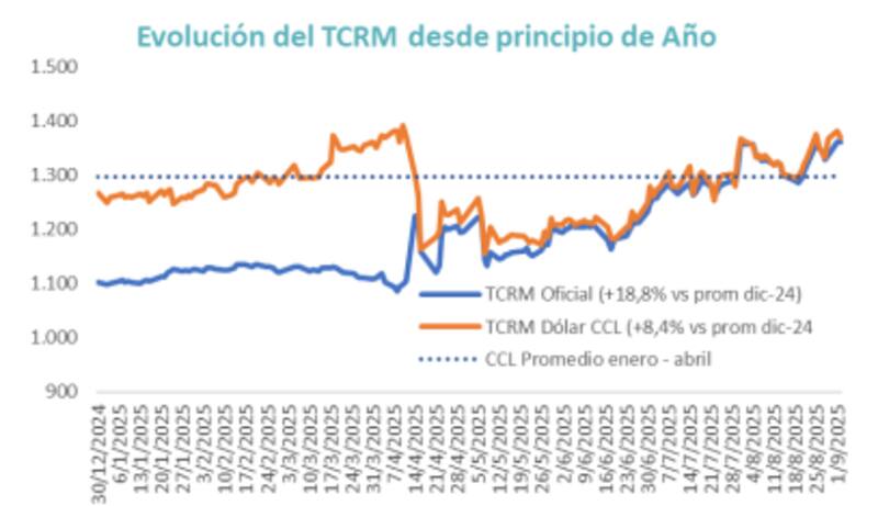 En ese marco, "el punto de equilibrio del tipo de cambio real sería más alto, dado que el Tesoro pasaría a ser un demandante neto de divisas y el flujo de inversiones se reduciría de forma significativa", concluyó.