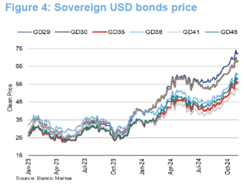 Los analistas de Research Mariva agregaron que, a pesar del viento en contra externo que ha comenzado a afectar a los mercados emergentes debido a la incertidumbre ante las elecciones del 5 de noviembre en Estados Unidos, los buenos fundamentos económicos a nivel local están dando soporte a los precios de los bonos soberanos.