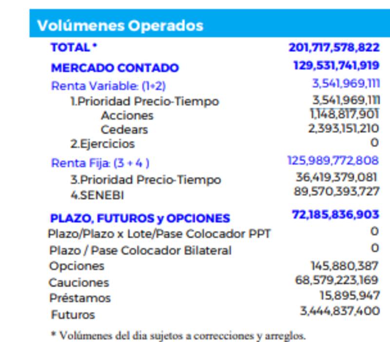 No obstante, si se observan los números consolidados al 31 de mayo, la renta variable en sí mismo ocupa un lugar marginal dentro del volumen negociado en ByMA. Hasta ese día, mientras que los títulos públicos representaban un 51,11% del volumen y las cauciones y pases el 33,65%, los Cedear significaron un 0,92% y las acciones, un 0,42 por ciento.