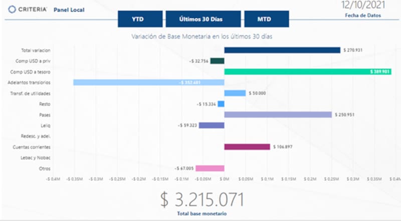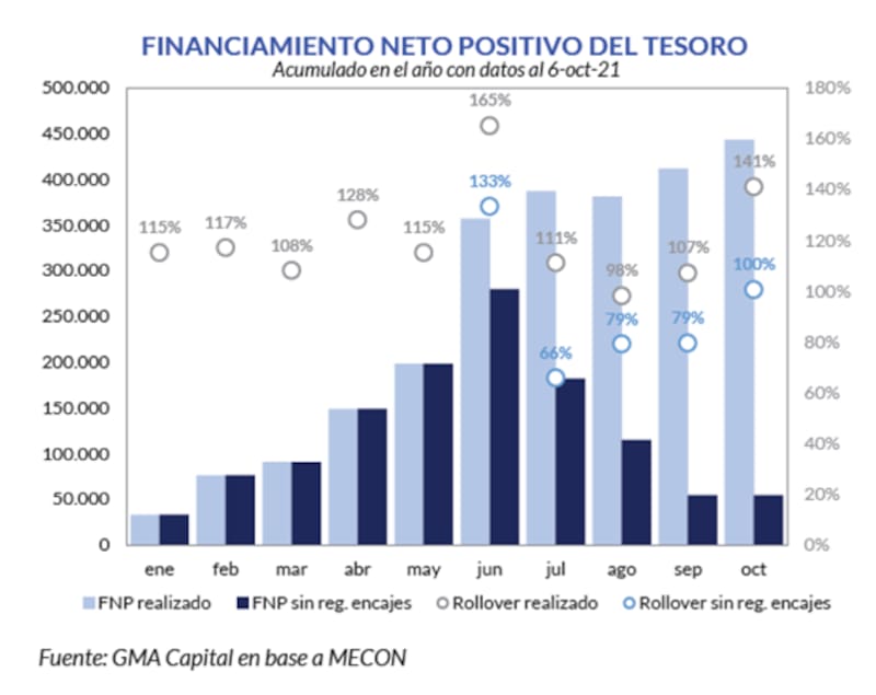 "La acumulación de vencimientos para la primera parte de 2022 es uno de los desafíos para el año próximo, en un contexto donde el gobierno plantea seguir con un déficit fiscal elevado, que baja muy gradualmente, donde los participantes del mercado local (bancos, compañías de seguro, FCI) ya están muy expuestos al soberano, y donde el financiamiento monetario requiere una esterilización que está llevando los pasivos remunerados del Banco Central a niveles problemáticos", comentó.