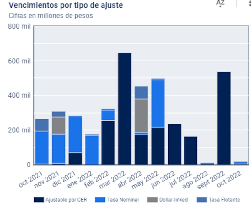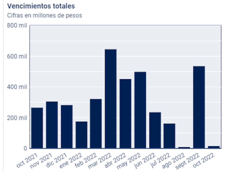 Hay dos meses por demás exigentes que son marzo de 2022, con deudas por $ 647.300 millones, y septiembre de 2022, con un total de vencimientos que asciende a $ 538.000 millones.
