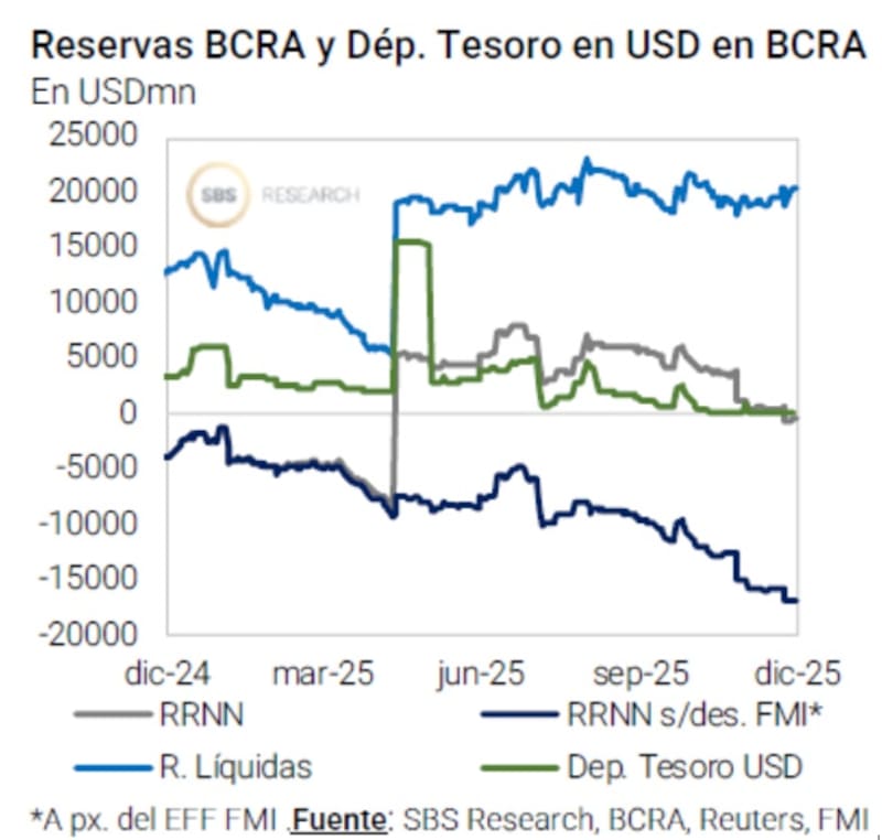 Sin embargo, hacen énfasis en la dinámica de las reservas hacia adelante para lograr una mayor baja del riesgo país y poder colocar bonos en ley internacional.