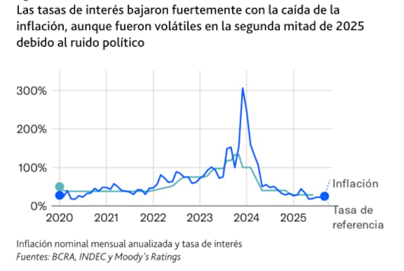 El documento señala que desde 2024, el cambio de rumbo en la política económica permitió restablecer el crecimiento y reducir la inflación, una dinámica que Moody’s espera que continúe durante 2026.