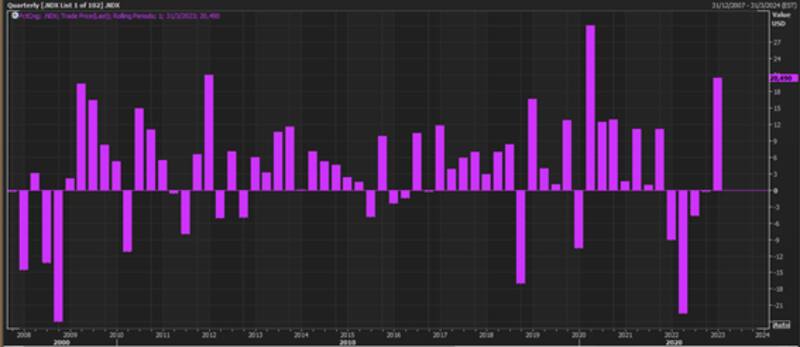 Cuando en 2022, el índice Nasdaq había sido el que más había caído y que más había sufrido la suba de tasas de la Fed, este año se da la situación opuesta.