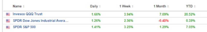 El Nasdaq registra ganancias de 20,5% y es el que más sube, ya que detrás del Nasdaq se encuentra el S&P500 que sube 7% y luego el Dow Jones con un leve avance de 0,4%.