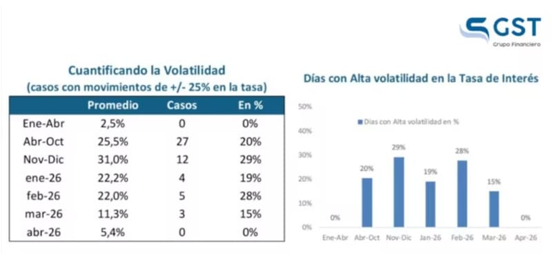 En retrospectiva, desde julio del año pasado, la volatilidad en la tasa de interés de corto plazo se disparó varias veces, que superó el 100% de tasa.