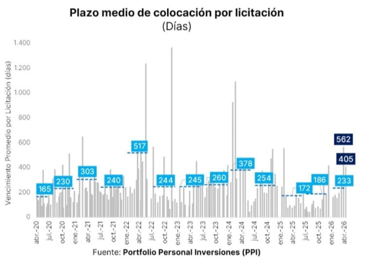 El plazo promedio de colocación pasó de niveles de 262 días hace un mes hasta los 562 en la última licitación.