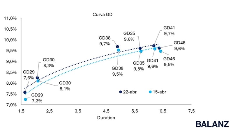 El Bonar 2027 apunta a rendir 5%, mientras que los bonos dentro de la curva rinden 7% en el tramo más corto y entre 9% y 9,5% en el tramo mas largo de la curva soberana.