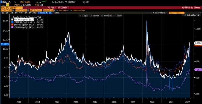 En tanto, la deuda de grado de inversión rinde cerca de su pico de la pandemia, en torno al 5 por ciento.