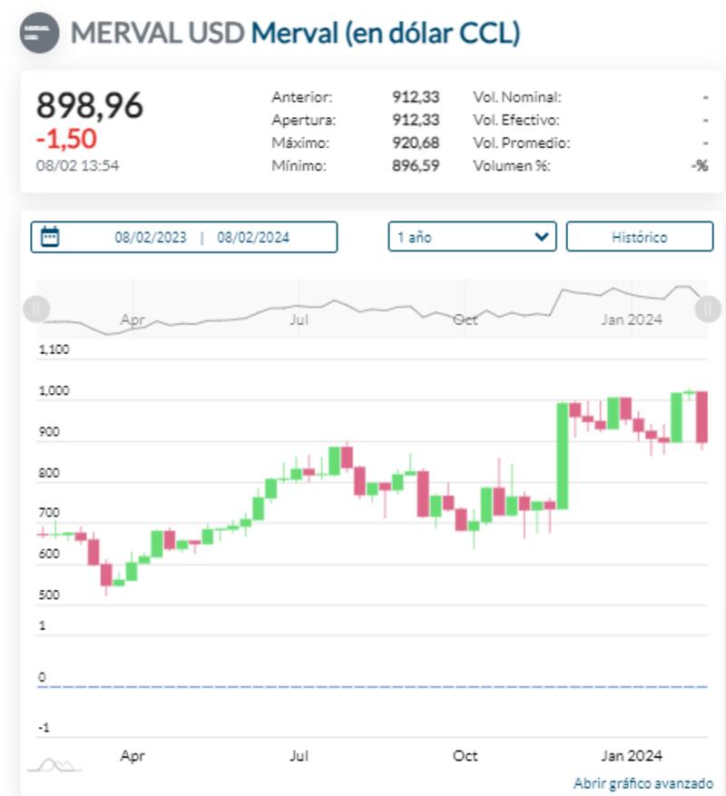 "Si se considera que el revés político del oficialismo respecto de la Ley Ómnibus puede ser revertido y varios de los temas allí incluidos que benefician al desarrollo de las empresas en Argentina podrán ponerse en vigencia, las bajas de esta semana constituyen una oportunidad de compra con un Merval más cercano a los u$s 900 que de los u$s 1000 que alcanzó la última semana de enero", afirmó