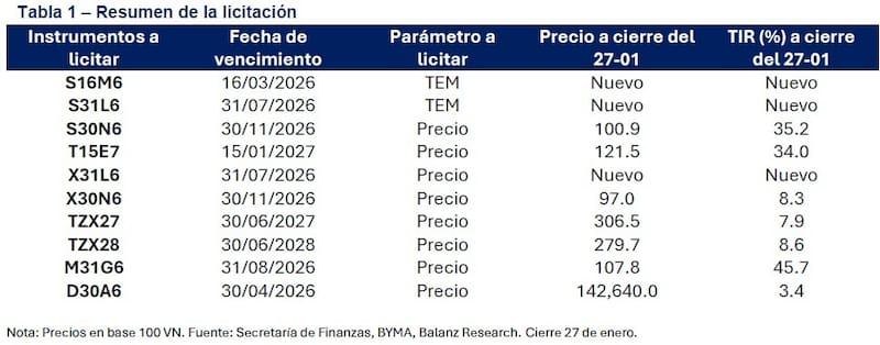 Por su parte, el asesor de inversiones, Leandro Monnittola, agregó que los vencimientos totales a enfrentar ascienden a $ 9,5 billones, correspondientes al Boncap T30E6 y al dólar linked D30E6, ambos con fecha de vencimiento para este viernes 30 de enero, mismo día en el que se realizará la liquidación de la licitación.