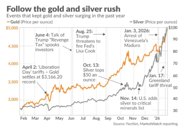 El oro saltó por encima de los u$s 5000 la onza y la plata rompió la barrera de los u$s 115. Es una tendencia que no responden a un único catalizador ni a un episodio aislado de euforia, sino que es el resultado de un proceso de meses de acumulación de riesgo, incertidumbre y desequilibrios que volvieron a poner a los metales preciosos en el centro del radar global.