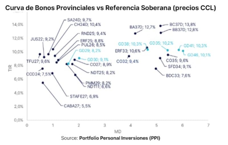 En ese sentido, una referencia más útil la aporta la reciente colocación de Entre Ríos, deslizó Morini, que emitió deuda internacional a 2033 (ERF33) con una tasa apenas superior al 10%.