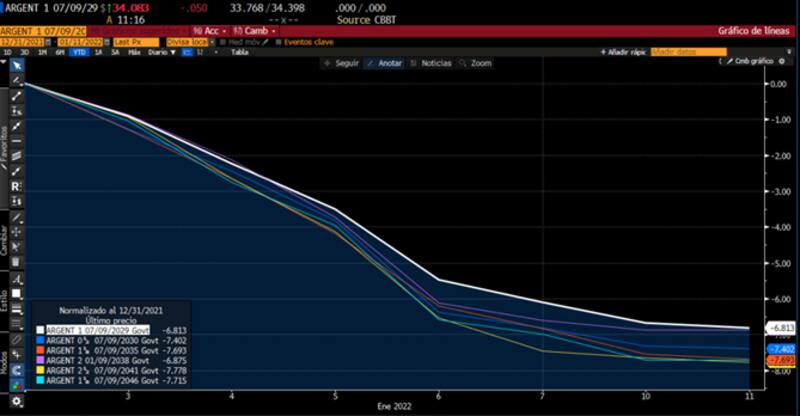 En cambio, los bonos argentinos no encuentran piso en el arranque de este 2022.